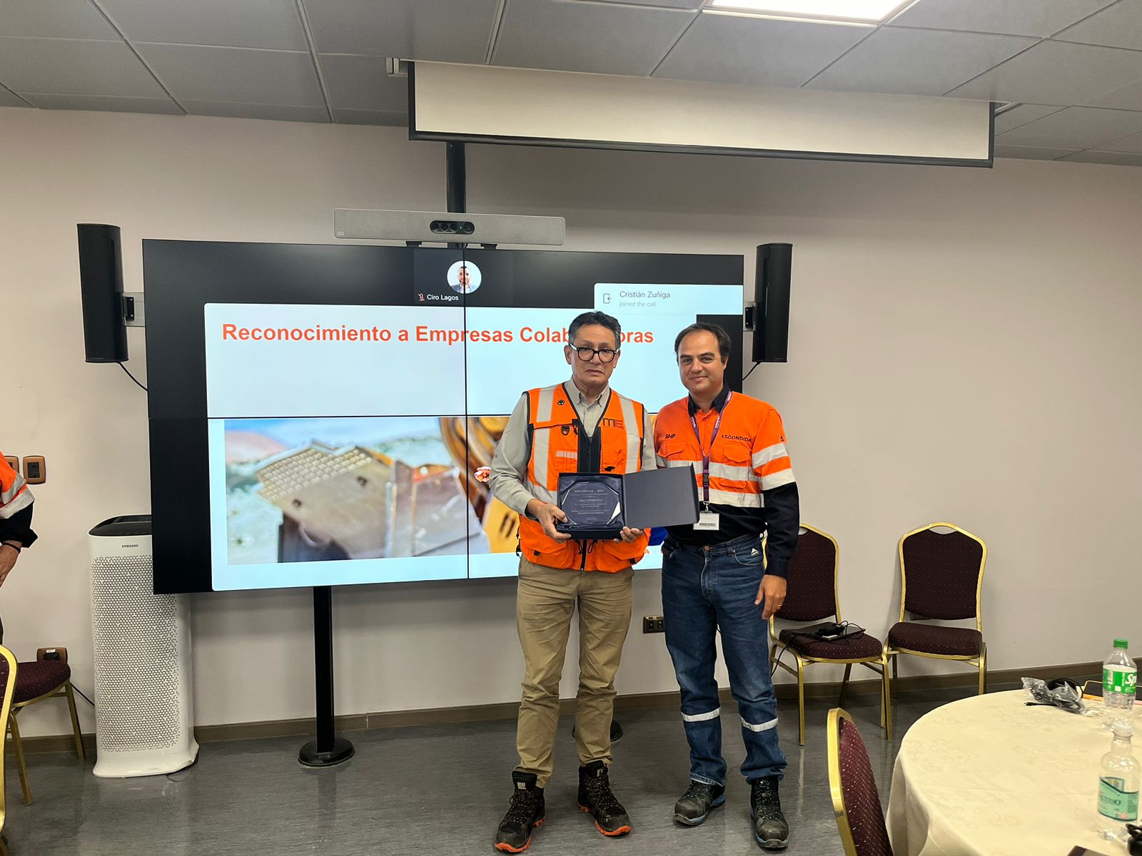 El premio fue entregado por Felipe Kilian, de HOP, a Roberto Lara, Gerente de SSOMA de Mas Errázuriz. Mella destacó este reconocimiento como un impulso para seguir mejorando y trabajando en equipo.